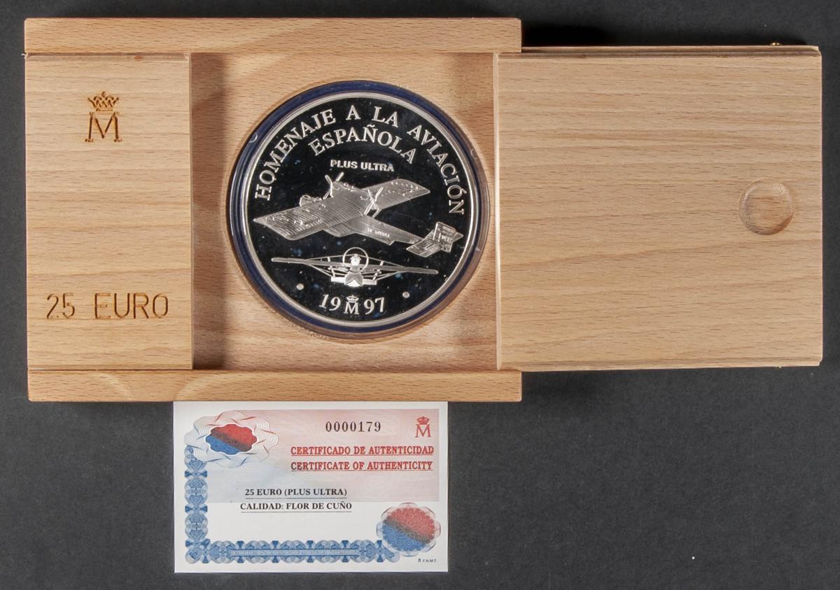 JUAN CARLOS I (1975-2014). 25 Euro (Ar. 168,75g/73mm). Serie Aviación Española. Plus Ultra. 1997. FNMT. FDC. Presentada en estuche oficial y con certificado de autenticidad.