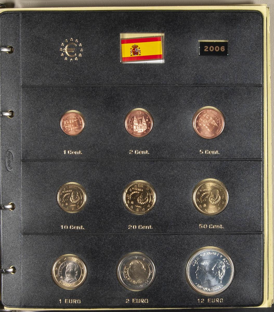 EUROS. Conjunto formado por alrededor de 200 monedas de diferentes países y fechas expuestas en 3 álbumes tipo Pardo. Incluyen piezas de módulos de 12 y 30 Euros. Mayoría de piezas SC. A EXAMINAR.
