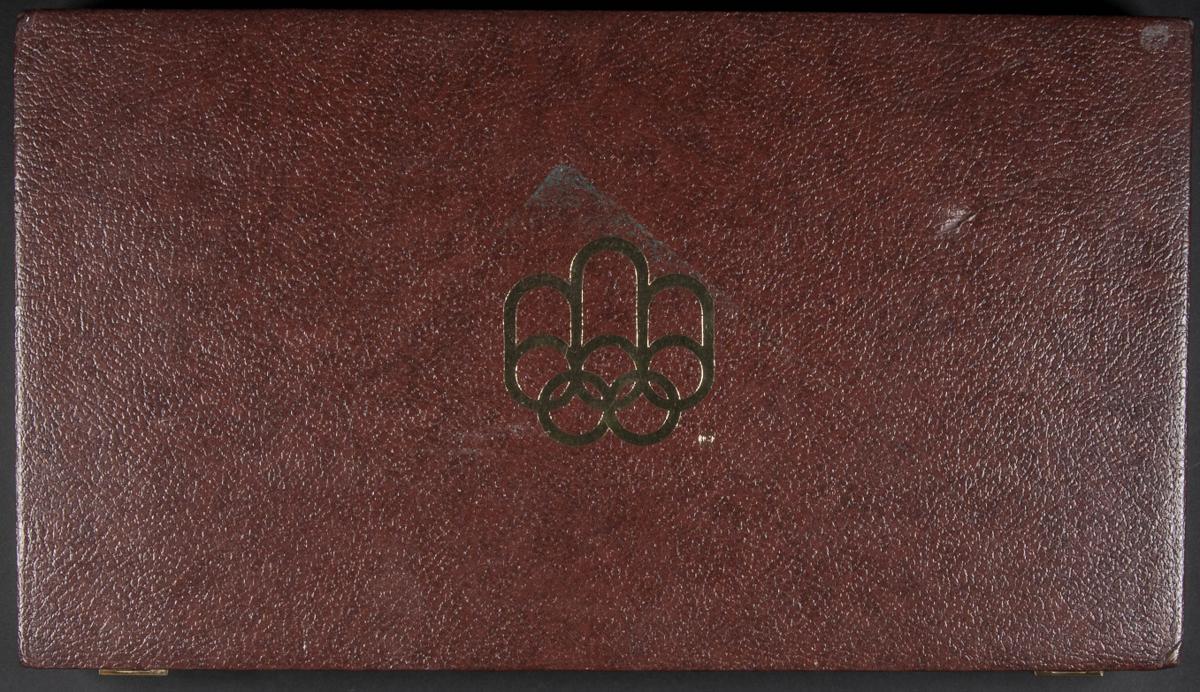CANADA. Estuche oficial y completo compuesto por 28 monedas de plata conmemorativas de los Juegos Olímpicos de Montreal 1976. Dos módulos diferentes, 5 (14) y 10 dollars (14). 1020 gramos de plata (92,5% de pureza) en total. PROOF.