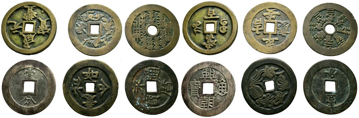 CHINA. Conjunto de 18 bronces de Cash de diferentes módulos y valores. Este lote es de imprescindible examen y se vende tal cual no adminitiendo devolución. A EXAMINAR.