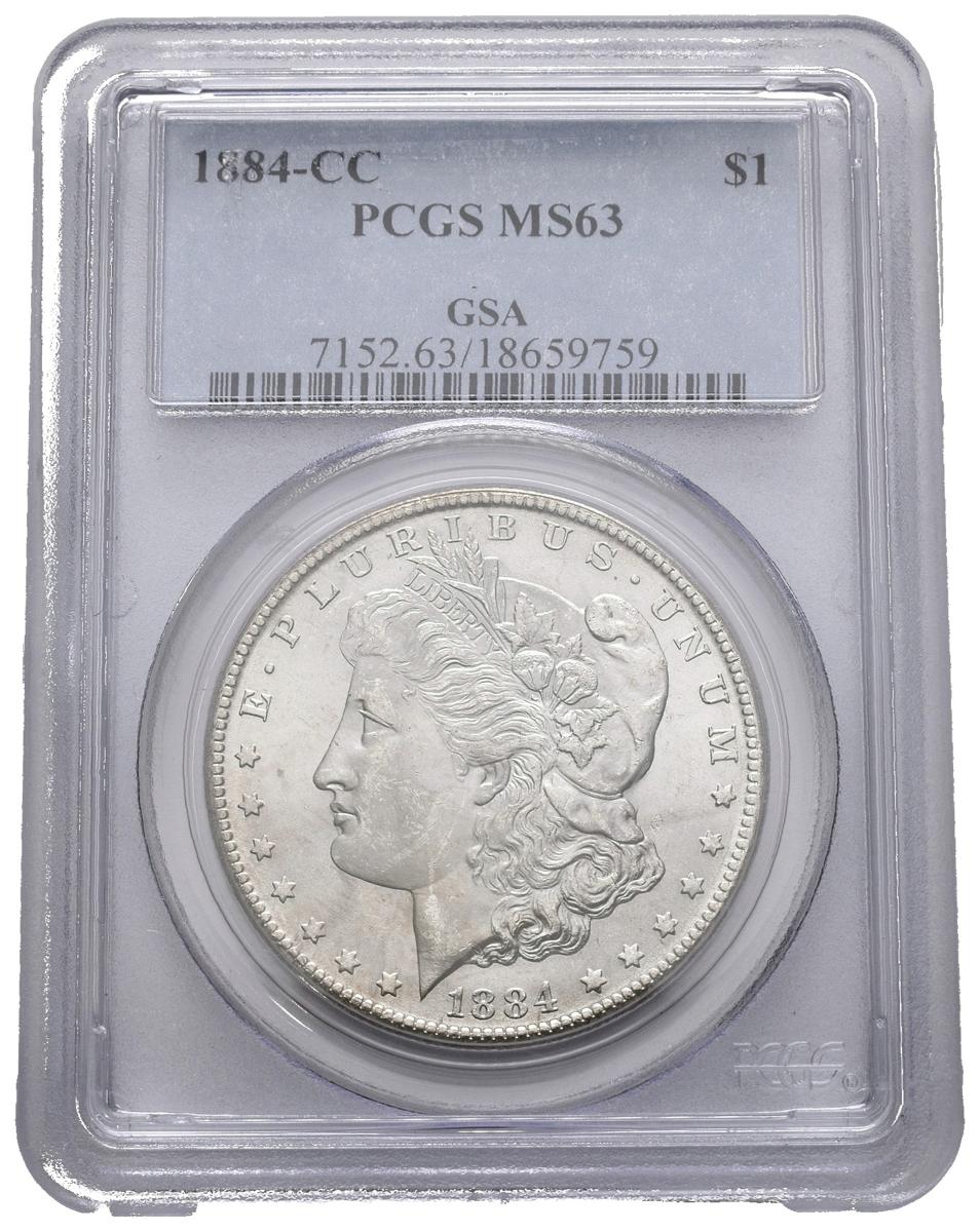 ESTADOS UNIDOS. 1 Dollar (Ar. 26,73g/38mm)*. 1884. Carson City CC. (Km#110). MS 63. Encapsulado por PCGS . *Peso y medida teórico.