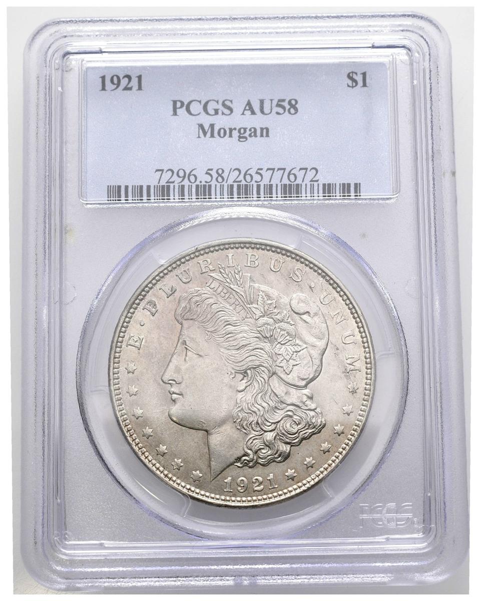 ESTADOS UNIDOS. 1 Dollar (Ar. 26,73g/38mm)*. 1921. Philadelphia. (Km#110). AU 58. Encapsulado por PCGS. *Peso y medida teórico.