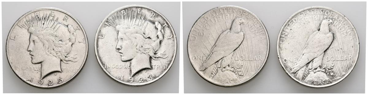ESTADOS UNIDOS. Pareja de Dólares tipo Liberty acuñados en Philadelphia en 1923 y 1925. Diferentes estados de conservación. A EXAMINAR.