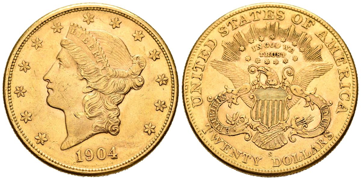 ESTADOS UNIDOS. 20 Dollars (Au. 33,38g/34mm). 1904. San Francisco S. (Km#74.3). MBC+.