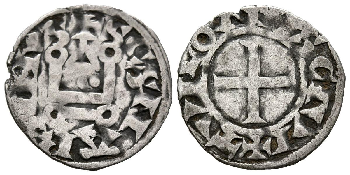 FRANCIA, San Martín de Tours. Dinero. (Ar. 0,90g/18mm). 1150-1200. Tournois. (Boudeau 185). Anv: Castillo, alrededor leyenda: SCS MARTINVS. Rev: Cruz dentro de gráfila, alrededor leyenda: TVRONIS CIVI. MBC-. Buen ejemplar.