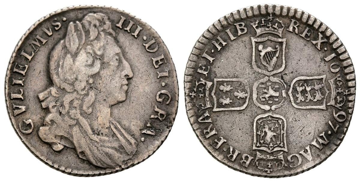 REINO UNIDO. 6 Peniques (Ar. 3.09g/21mm). 1697. Guillermo III. Sin marca de ceca. (Km#496). MBC.