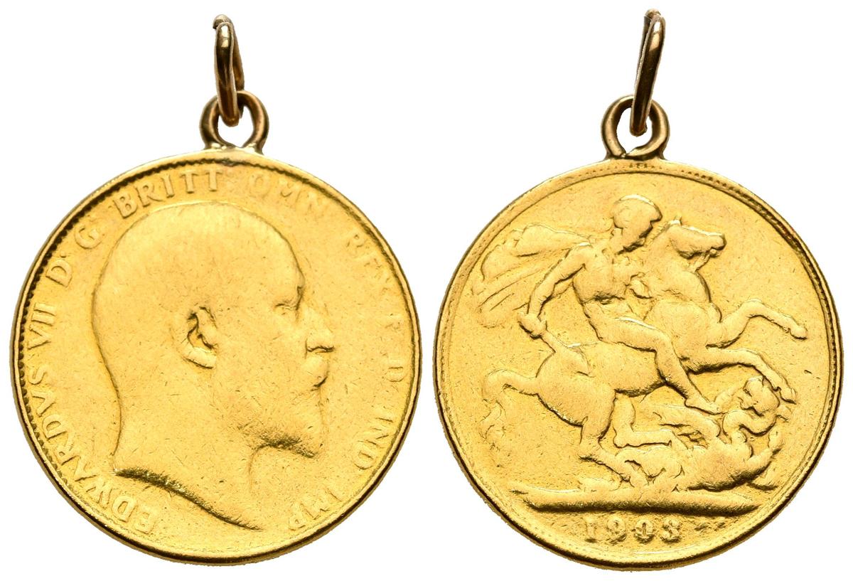 GRAN BRETAÑA. Soberano. (Au. 7,97g/22mm). 1903. (Km#805). MBC-. Colgada. Utilizada como joya.
