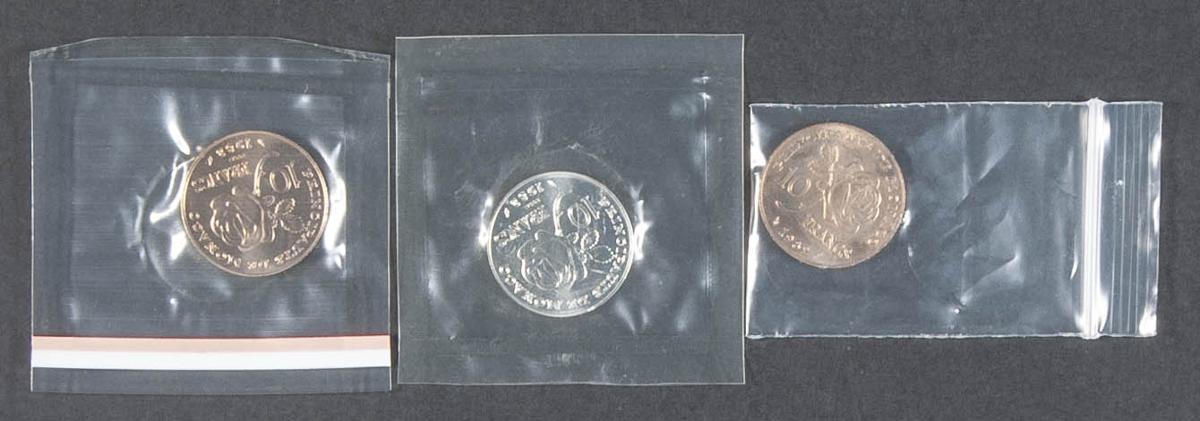 MÓNACO. Trío de 10 Francos en Prueba (2 en cobre y 1 en plata). 1982. Princesa Grace 1929-1982. En blister. SC.