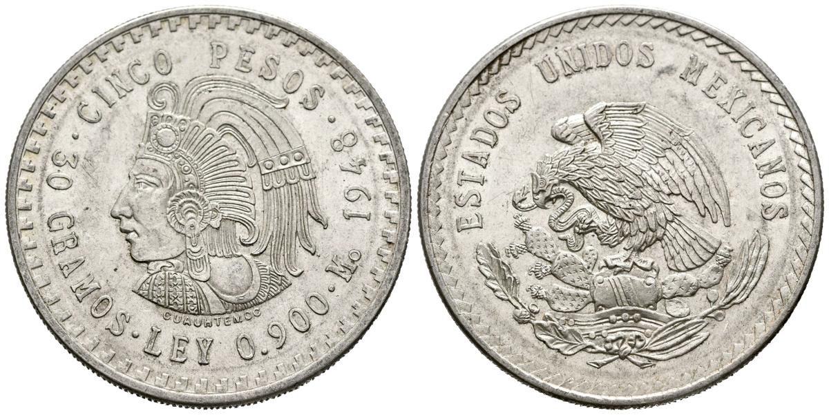 MÉXICO. 5 Pesos. (Ar. 29,89g /40mm). 1948. (Km#465). EBC+.