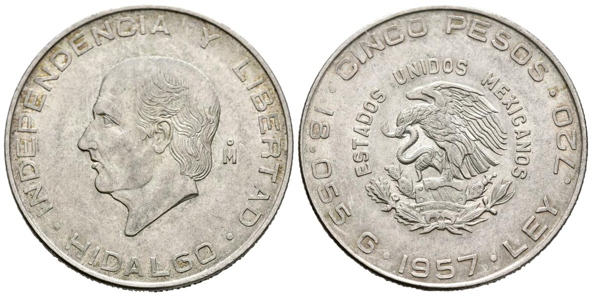 MÉXICO. 5 Pesos. (Ar. 17,97g /36mm). 1957. Hidalgo. (Km# 469). EBC.