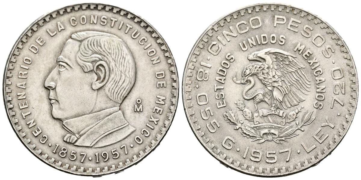 MÉXICO. 5 Pesos. (Ar. 18,06g /36mm). 1957. Centenario de la Constitución. (Km# 470). EBC-.