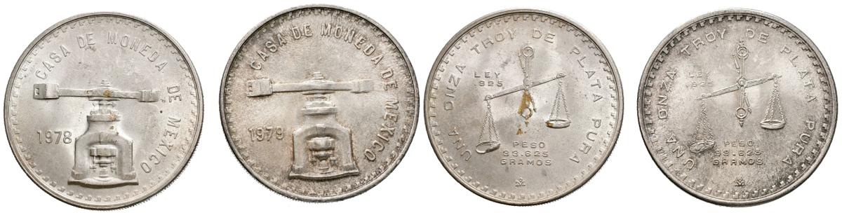 MÉXICO. Parejas de Onzas Troy de plata pura acuñadas en los años 1978 y 1979. EBC. A EXAMINAR.