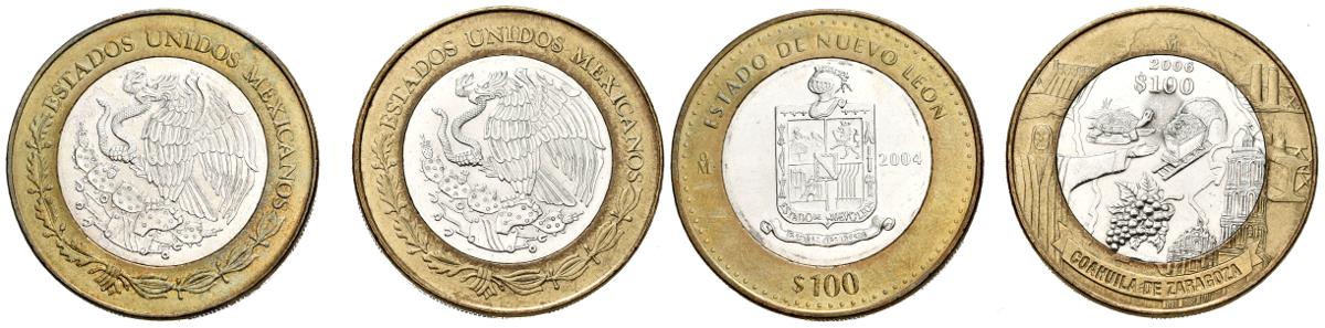 MÉXICO. Pareja de 100 Pesos bimetálicos acuñados en 2004 y 2006. Alto nivel de conservación. A EXAMINAR.
