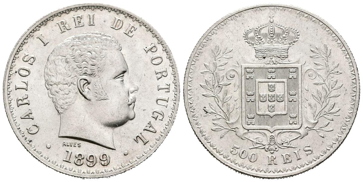 PORTUGAL. 500 Reis (Ar. 12,48g/31mm). 1899. Carlos I. (Gomes 11.13). EBC+. Gran ejemplar.
