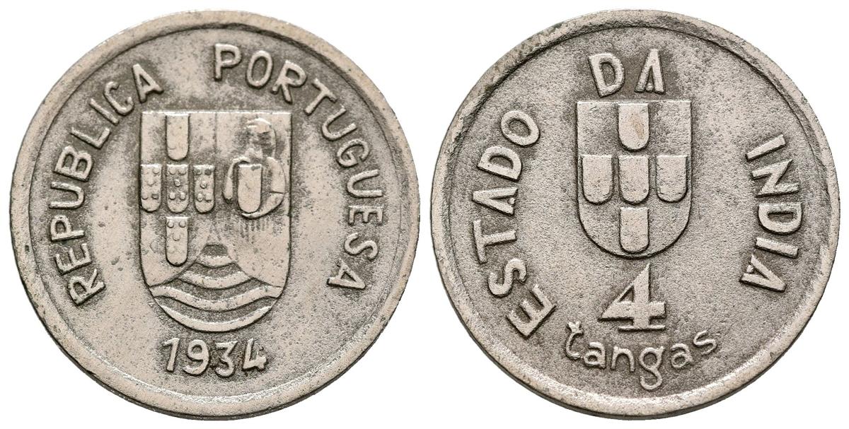 India (Portuguesa). 4 Tangas (CuNi. 3,92g/23mm). 1934. (Gomes 05.01). MBC. Escasa.