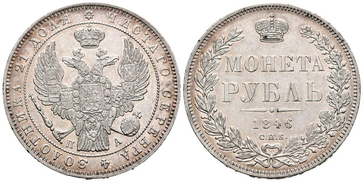 RUSIA. 1 Rublo (Ar. 20,71g/35mm). 1846. Nicolás I. San Petersburgo. (Km#168.1). EBC-. Marquitas. Restos de brillo original.