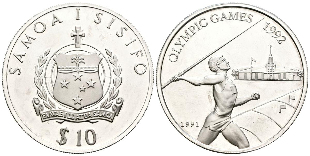 SAMOA. 10 Tala (Ar. 30,72g/39mm). 1991. Juegos Olímpicos Barcelona 92. (Km#85). PROOF.