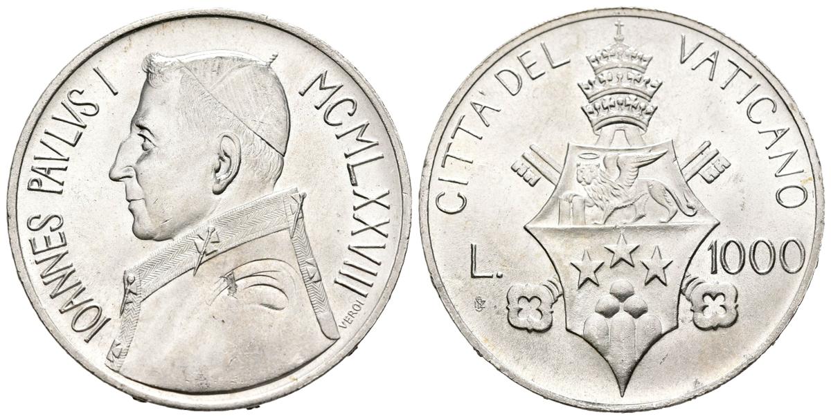 VATICANO. 1000 Liras (Ar. 14,64g/31mm). 1979. Juan Pablo I. (Km#142). EBC. Hojita en anverso.