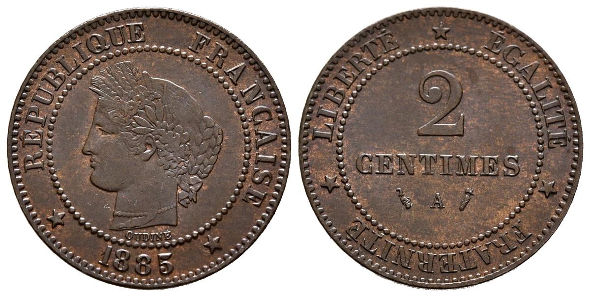 FRANCIA. 2 Centimes (Ae. 2,04g/20mm). 1885. París A. (Km#827.1). EBC+.