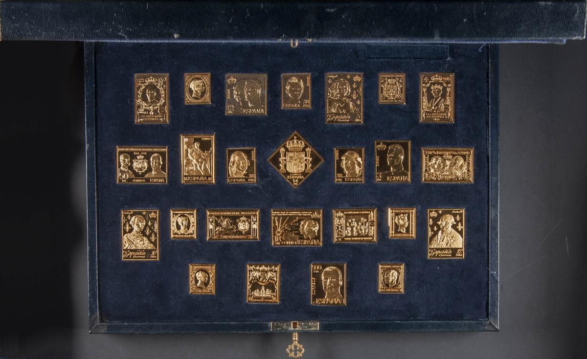 ESPAÑA. La Casa de Borbón, Tres Siglos de Historia de España. Colección de 25 sellos en plata de 0.925 milésimas y bañados en oro. Peso total del conjunto: 724,50g. Incluye estuche original con llave y paño de joyero. Realizado por Hallmark Replicas Ltd. Magnífico estado de conservación. A EXAMINAR.