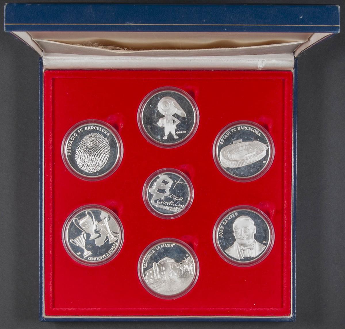 ESPAÑA. Estuche compuesto por 7 medallas de plata conmemorativas del Centenario del F.C. Barcelona. 1899-1999. Incluye estuche original de Argentfi S.A. Barcelona. PROOF. A EXAMINAR.