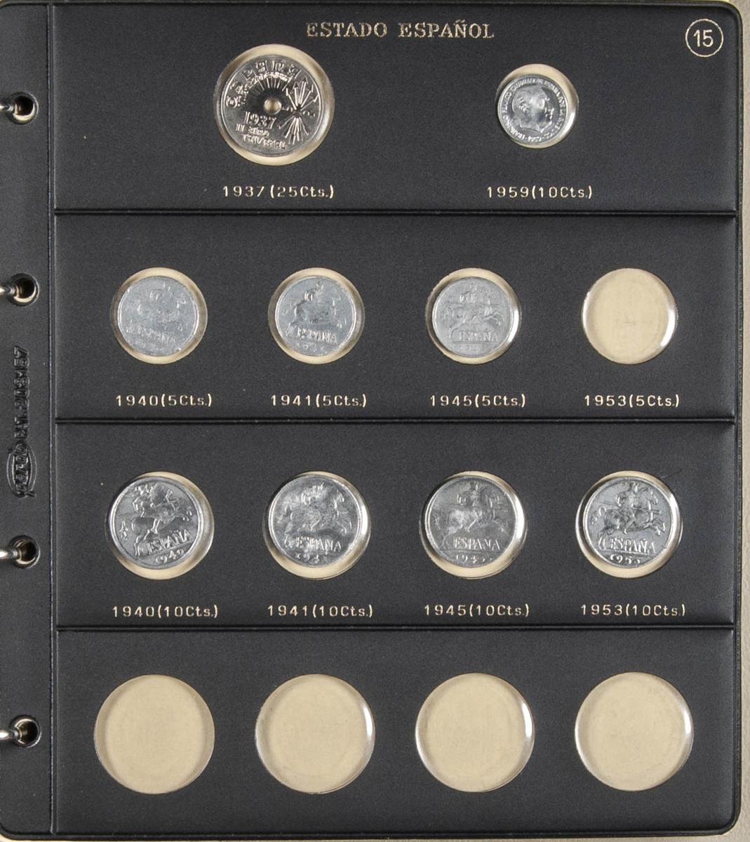 ESTADO ESPAÑOL. Álbum compuesto por decenas de monedas del Estado Español que se completa con una tira incompleta *68. Gran variedad de módulos, materiales (incluye 4 piezas en plata de 100 Pesetas de 1966) y fechas. Diferentes estados de conservación. A EXAMINAR.
