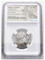 ATTICA, Atenas. Tetradracma. (Ar. 17,20g/22mm). 454-404 a.C. (SNG Copenhagen 31). Anv: Cabeza de Atenas con casco ático con cresta a derecha. Rev: Búho estante a derecha mirando de frente, delante: AOE, detrás rama de olivo. Encapsulado por NGC ChAU 5/5 - 2/5.