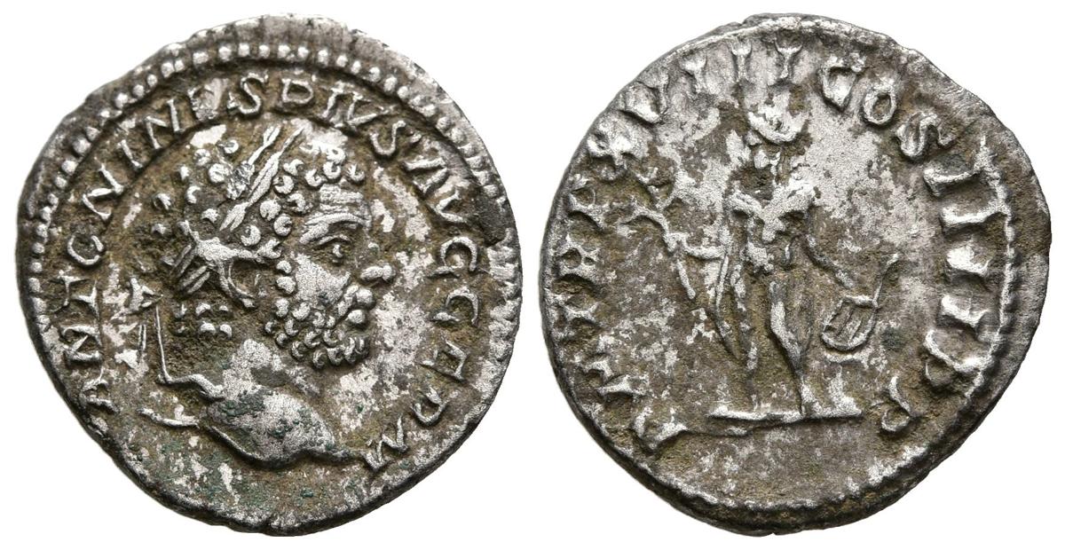 CARACALLA. Denario. (Ar. 2,93g/19mm). 215 d.C. Roma. (RIC 254). Anv: Cabeza laureada de Caracalla a derecha, alrededor leyenda: ANTONINVS PIVS AVG GERM. Rev: Apolo estante a izquierda portando rama y lira sobre columna, alrededor leyenda: P M TR P XVIII COS IIII P P. MBC.