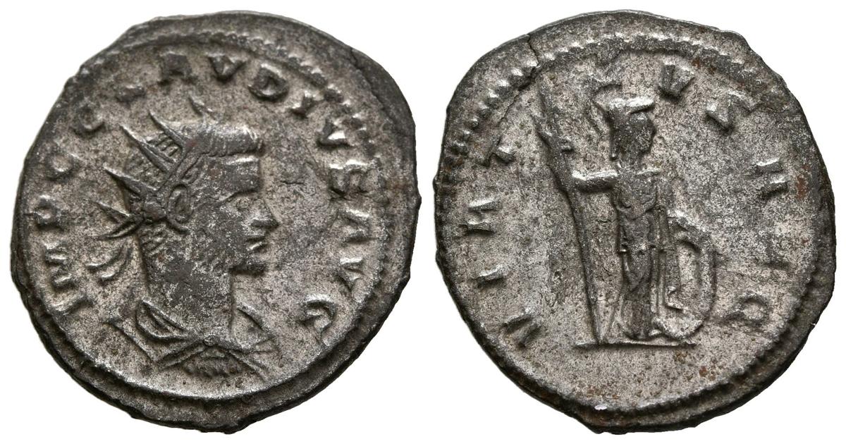 CLAUDIO II. Antoniniano. (Ve. 3,59g/22mm). 270 d.C. Cícico. (RIC 254). Anv: Busto radiado y drapeado de Claudio II a derecha, alrededor leyenda: IMP CLAVDIVS P F AVG. Rev: Virtus estante a izquierda portando lanza y escudo, alrededor leyenda: VIRTVS AVG. MBC+.