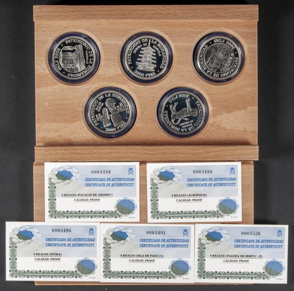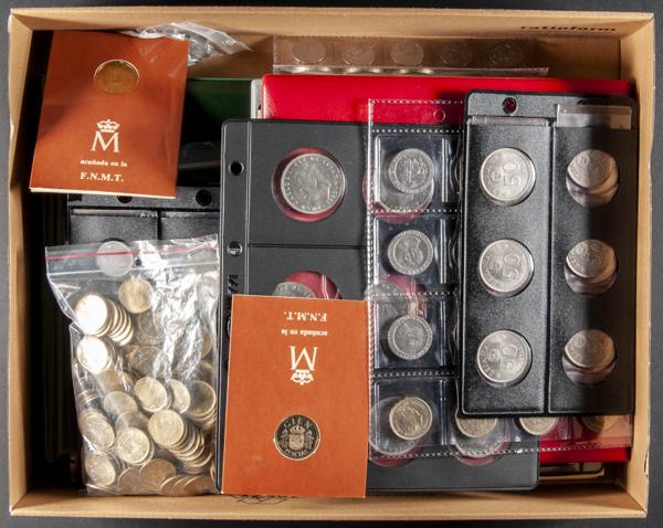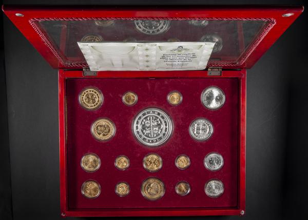 JUAN CARLOS I (1975-2014). Magnífica colección expuesta en 2 álbumes Pronumas con alrededor de 200 monedas en alto grado de conservación (la mayoría de ellas SC). Destacan en el conjunto las 5 Pesetas del Error del Mundial del 82, la Serie E-87, el error de las 25 Pesetas de Castilla León (sin la Y) y una gran cantidad de pruebas y piezas en plata de 2000 Pesetas. A EXAMINAR.