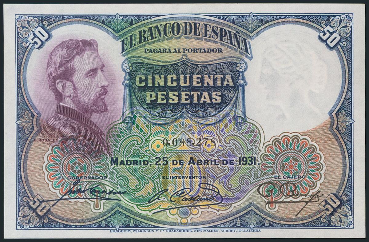 50 Pesetas. 25 de Abril de 1931. Sin serie. (Edifil 2017: 359). Apresto original. EBC+.