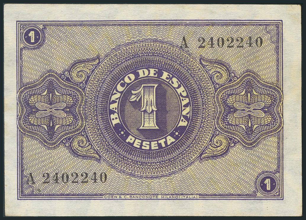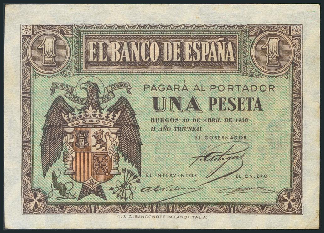 Conjunto de 6 billetes de 1 Peseta emitidos el 30 de Abril de 1938, diversas series (Edifil 2017: 428, 428a). EBC/MBC.