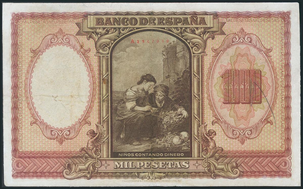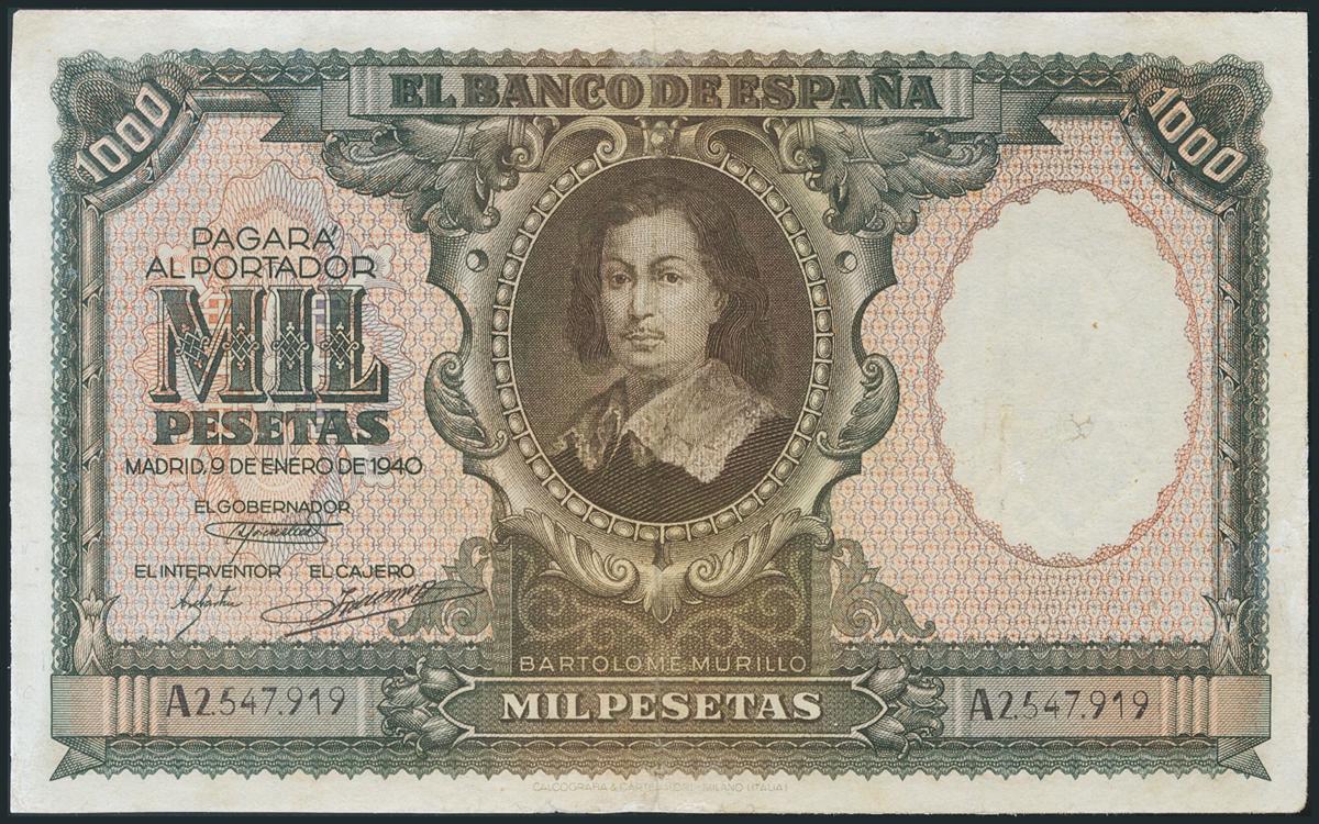 1000 Pesetas. 9 de Enero de 1940. Serie A. Reparado. (Edifil 2017: 440). MBC.