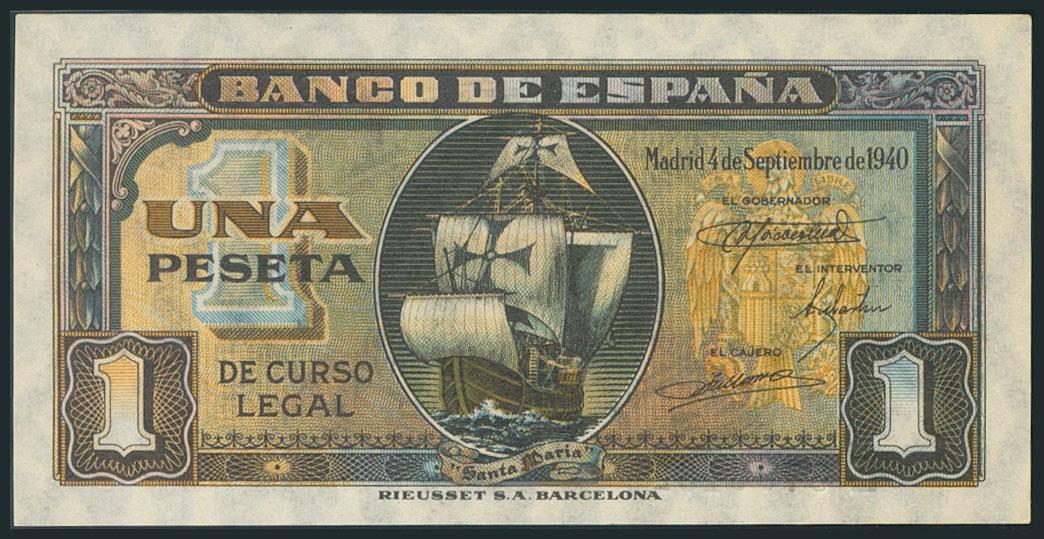 1 Peseta. 4 de Septiembre de 1940. Serie E. Ondulación vertical. (Edifil 2017: 442a). EBC+.
