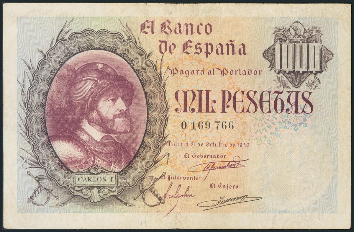1000 Pesetas. 21 de Octubre de 1940. Sin serie. (Edifil 2017: 445). MBC.