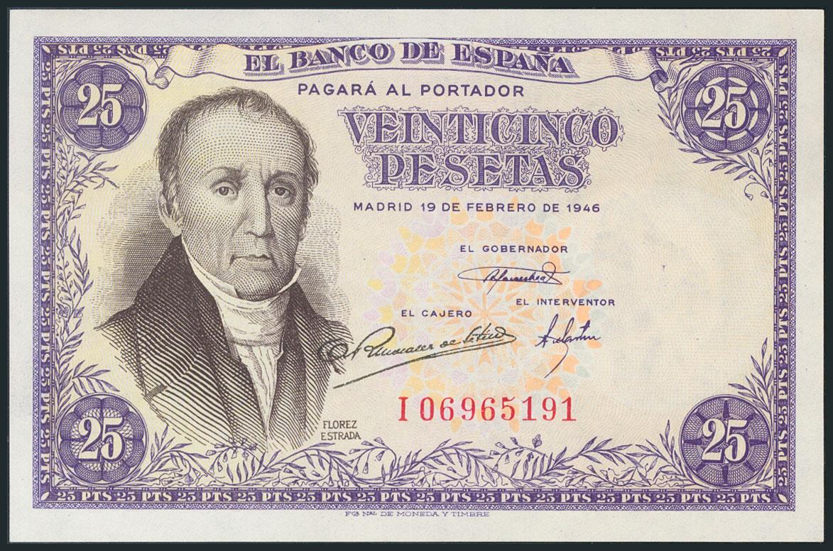 25 Pesetas. 19 de Febrero de 1946. Serie I. ( Edifil 2015: 450a). Apresto original. SC.