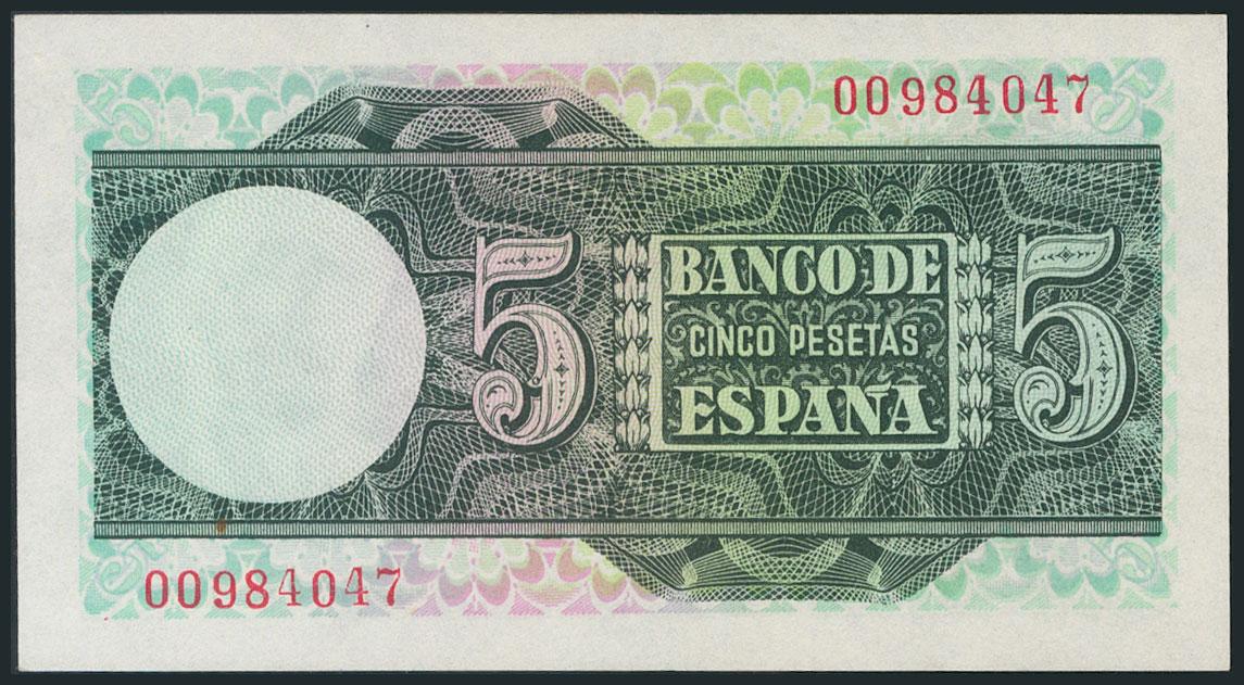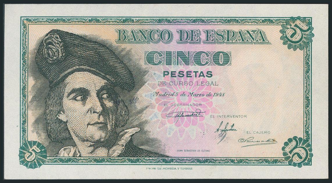 5 Pesetas. 5 de Marzo de 1948. Sin serie. (Edifil 2017: 455). SC.