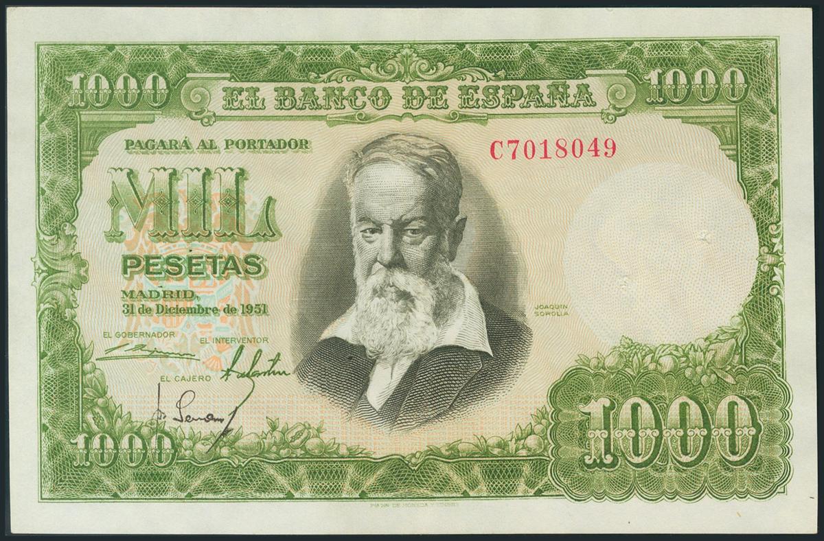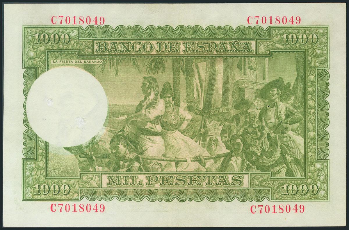 1000 Pesetas. 31 de diciembre de 1951. Serie C. (Edifil 2017: 463a). Varios puntos de grapa, dos de ellos reparados y apresto original. MBC.