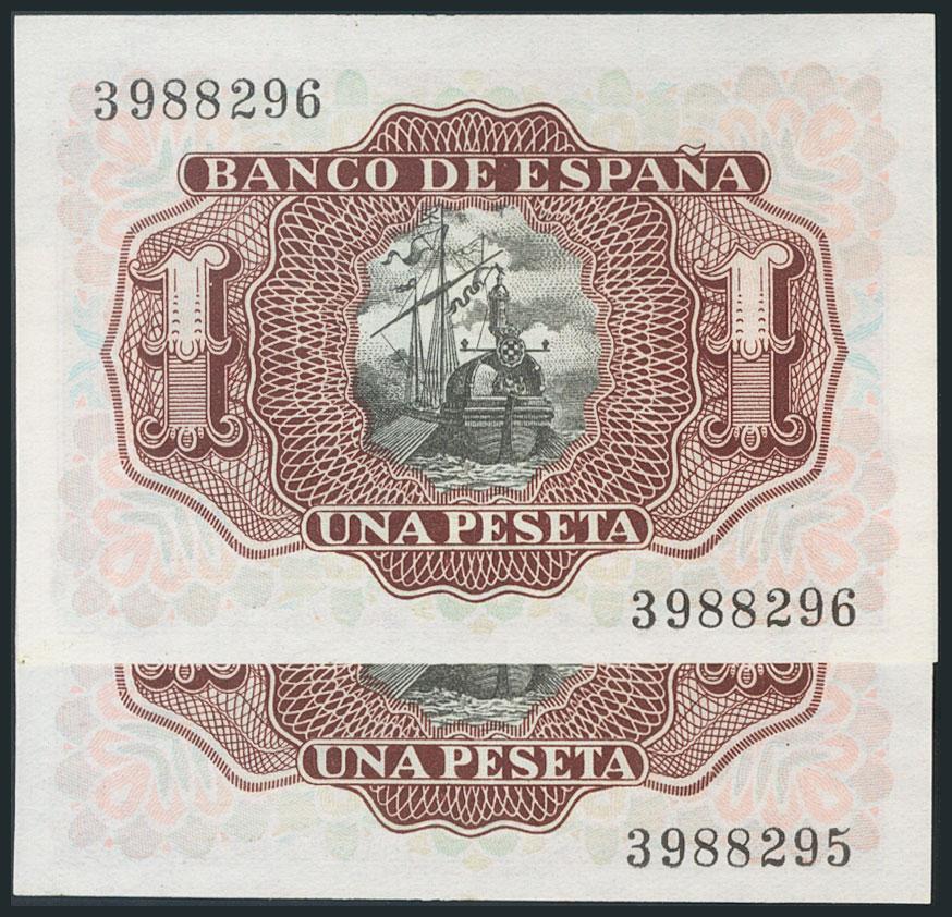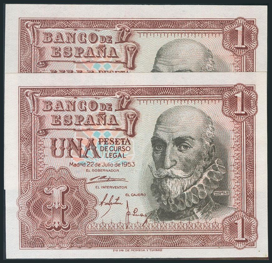 1 Peseta. 22 de Julio de 1953. Pareja correlativa. Sin serie. (Edifil 2017: 465). SC-.