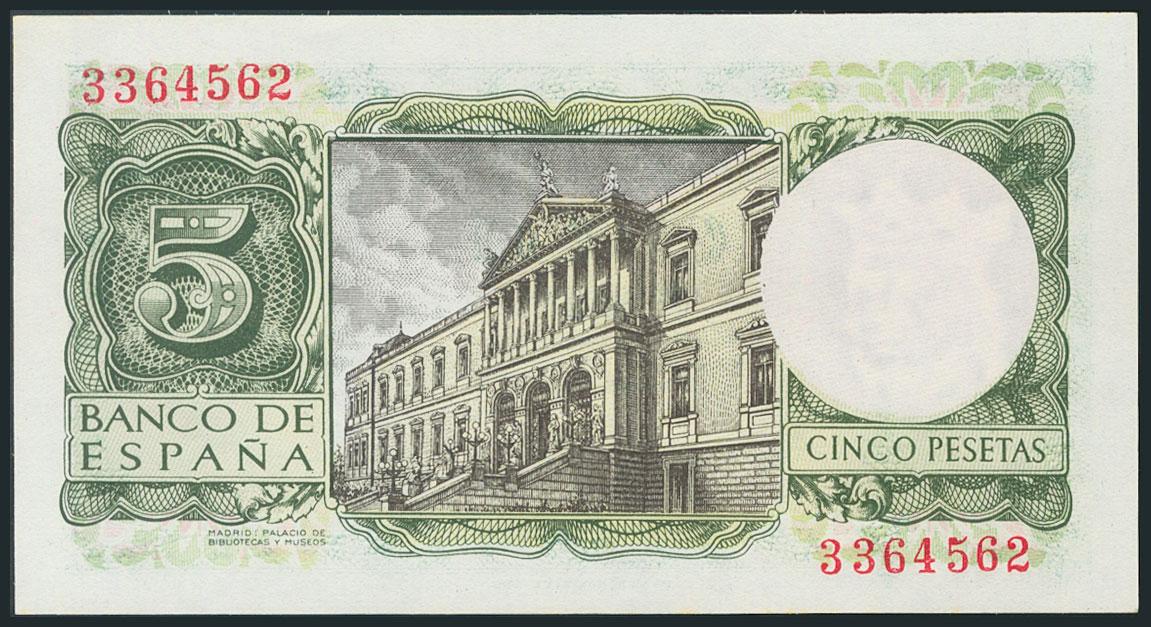 5 Pesetas. 22 de Julio de 1954. Sin serie. (Edifil 2017: 466). SC.
