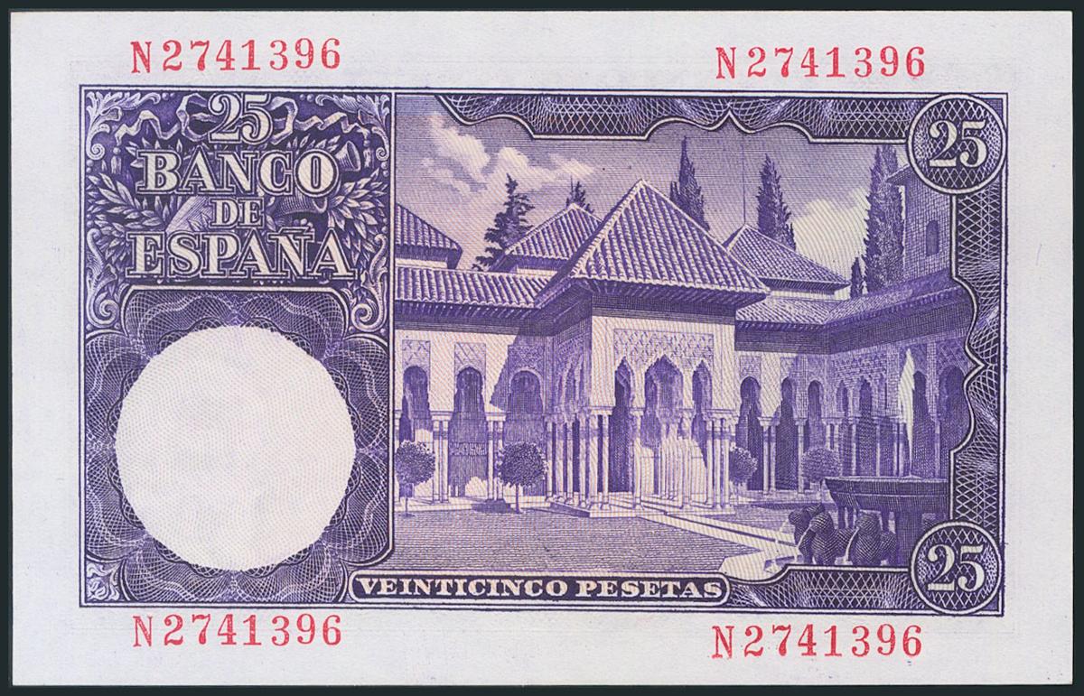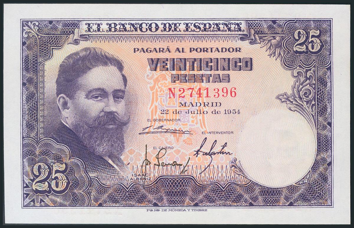 25 Pesetas. 22 de Julio de 1954. Serie N. (Edifil 2017: 467a). SC.