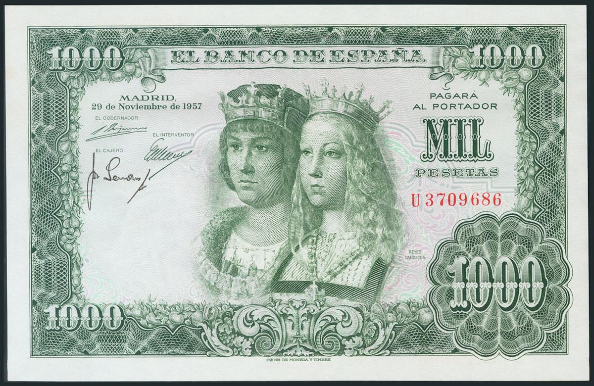 1000 Pesetas. 29 de Noviembre de 1957. Serie U. (Edifil 2017: 469Y). SC.