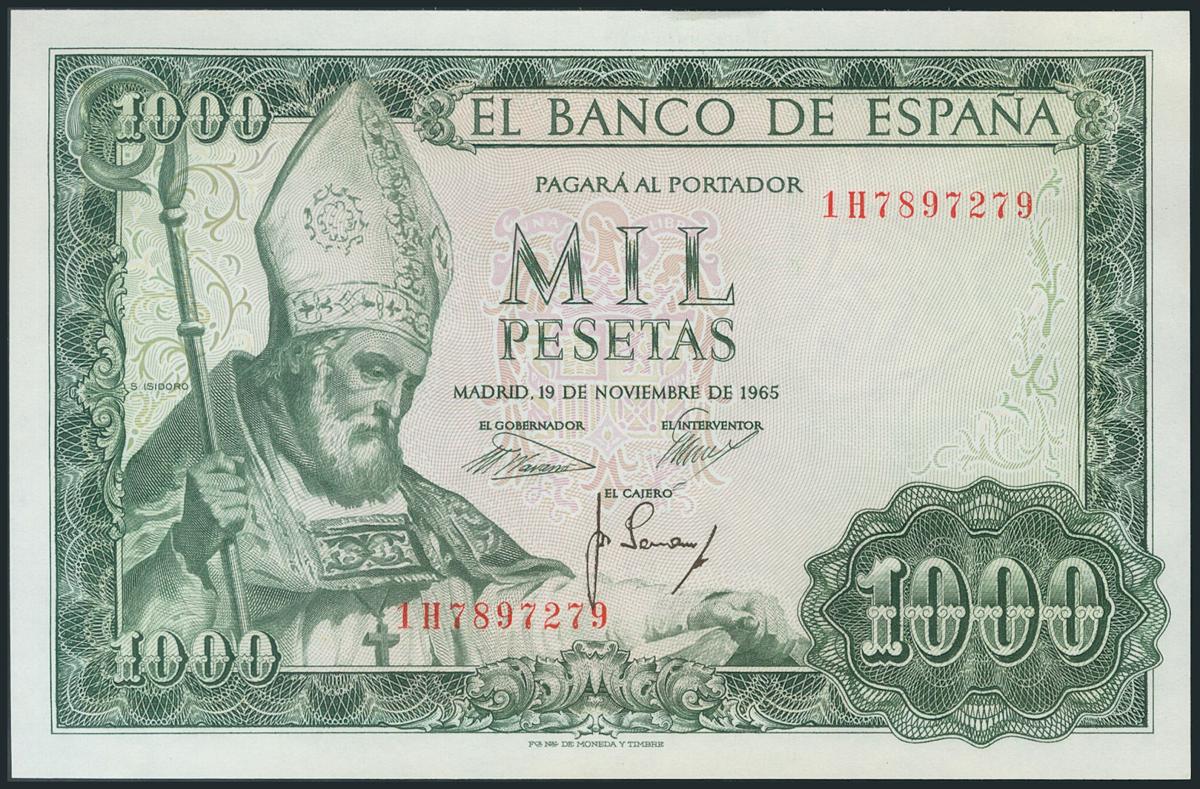 1000 Pesetas. 19 de Noviembre de 1965. Serie 1H. (Edifil 2017: 471b). SC.