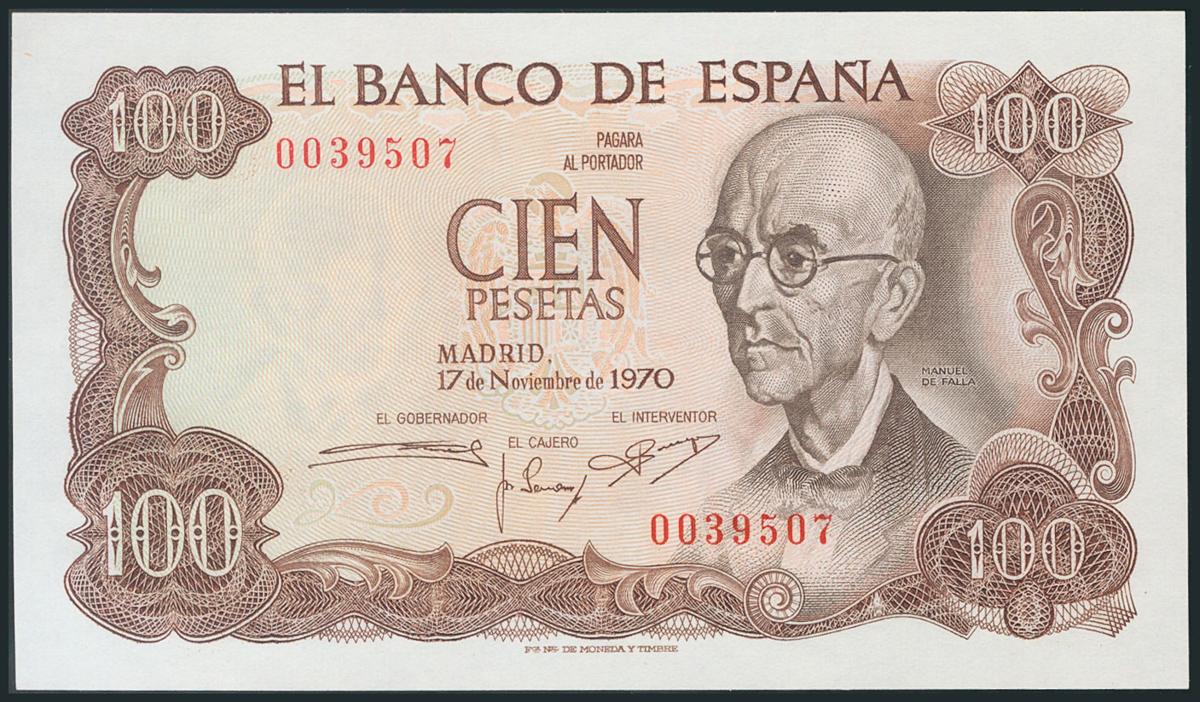 100 Pesetas. 17 de Noviembre de 1970. Sin serie. (Edifil 2017: 472). SC.