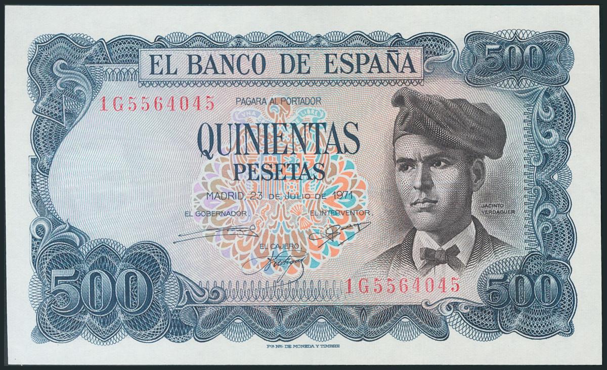 500 Pesetas. 23 de Julio de 1971. Serie 1G. (Edifil 2017: 473a). SC.