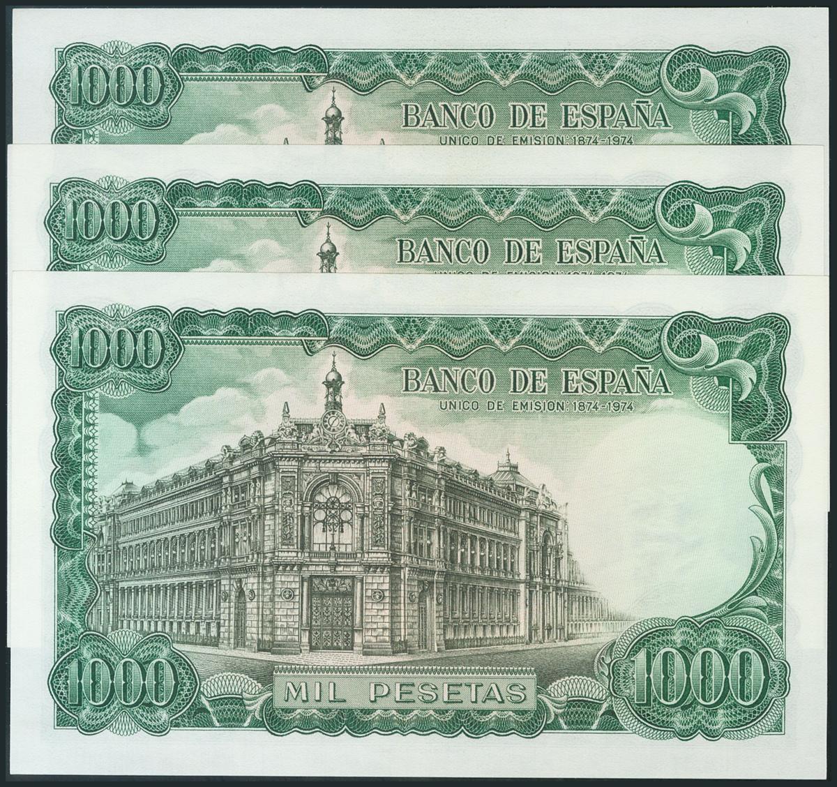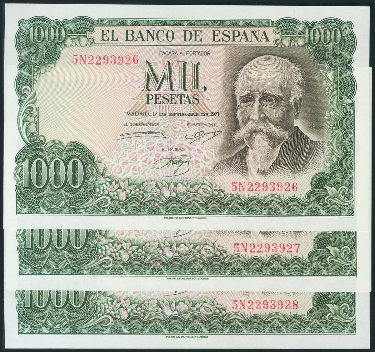 1000 Pesetas. 17 de Septiembre de 1971. Trío correlativo. Serie 5N. (Edifil 2017: 474c). SC.