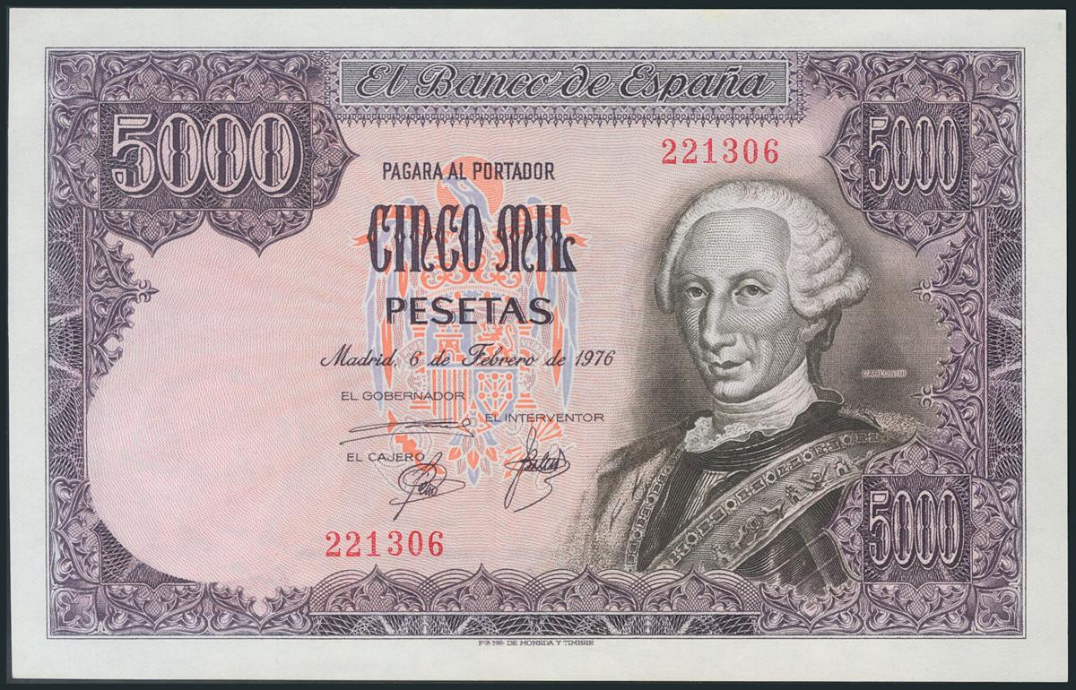 5000 Pesetas. 6 de Febrero de 1976. Sin serie. (Edifil 2017: 475). SC.