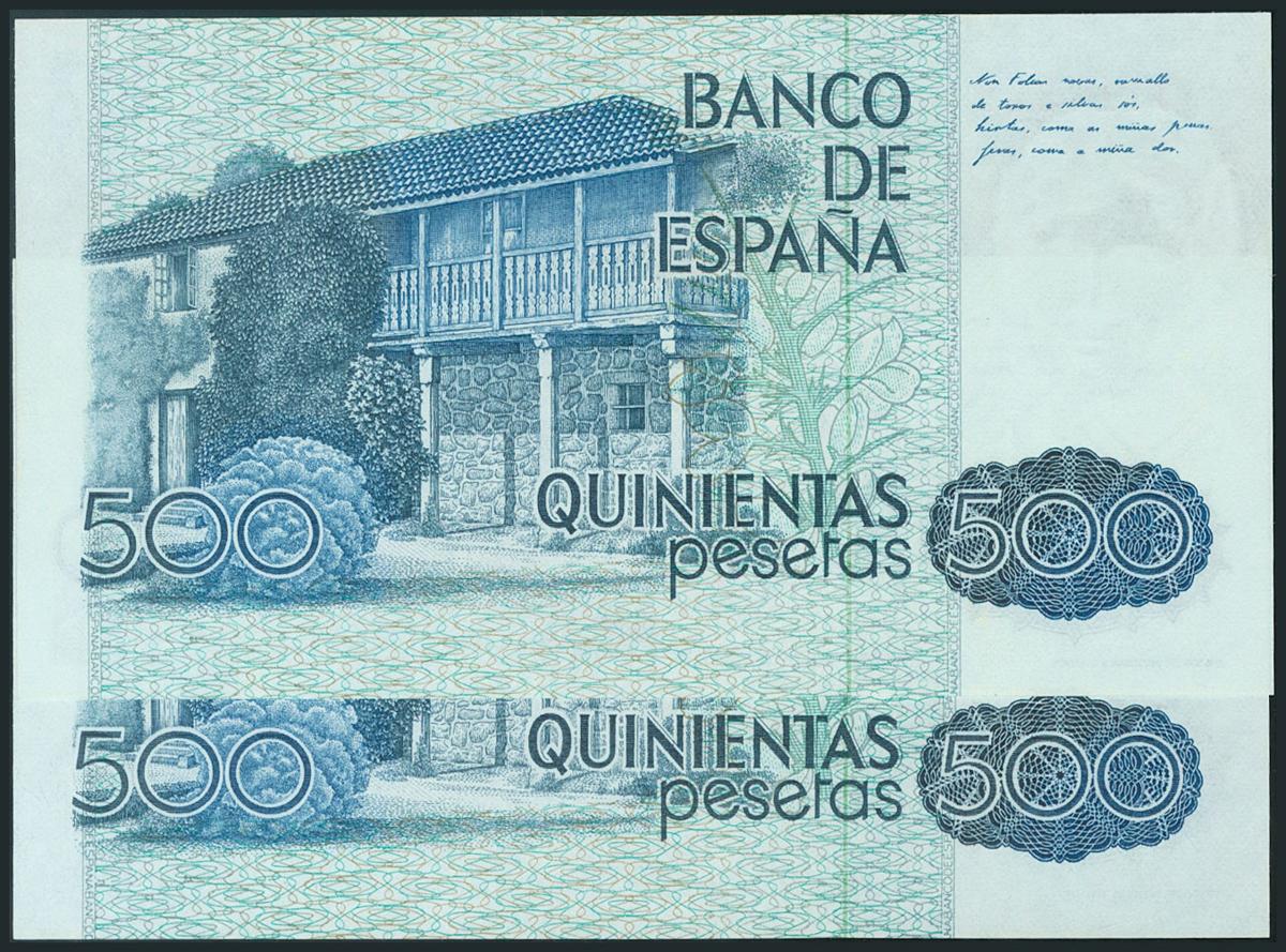 500 Pesetas. 23 de Diciembre de 1979. Pareja correlativa. Sin serie. (Edifil 2017: 476). SC.