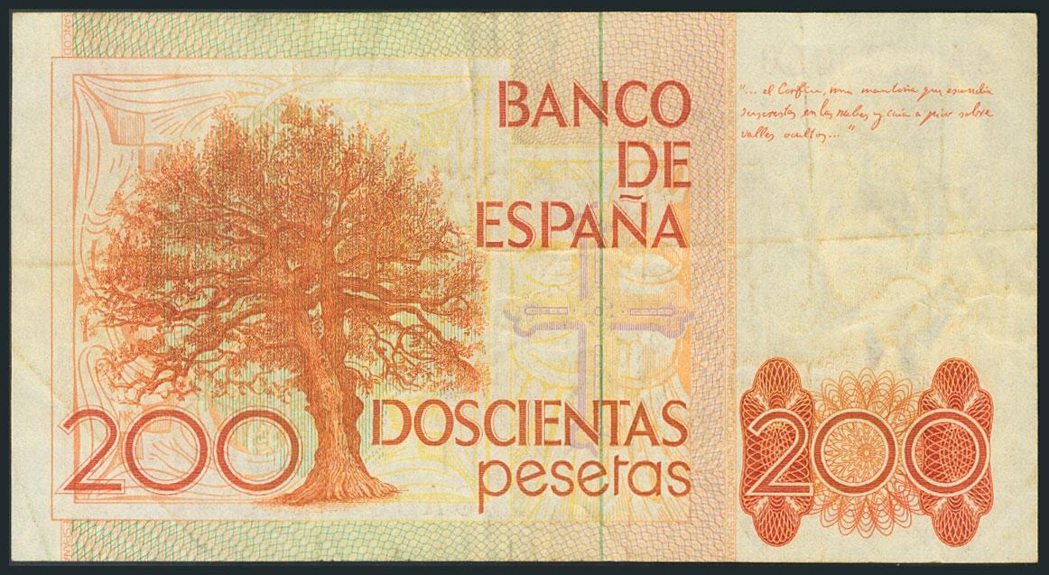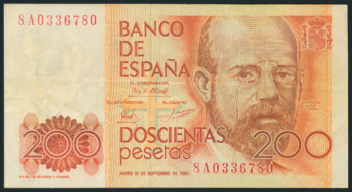 200 Pesetas. 18 de Septiembre de 1980. Serie 8A. (Edifil 2017: 480c). MBC.