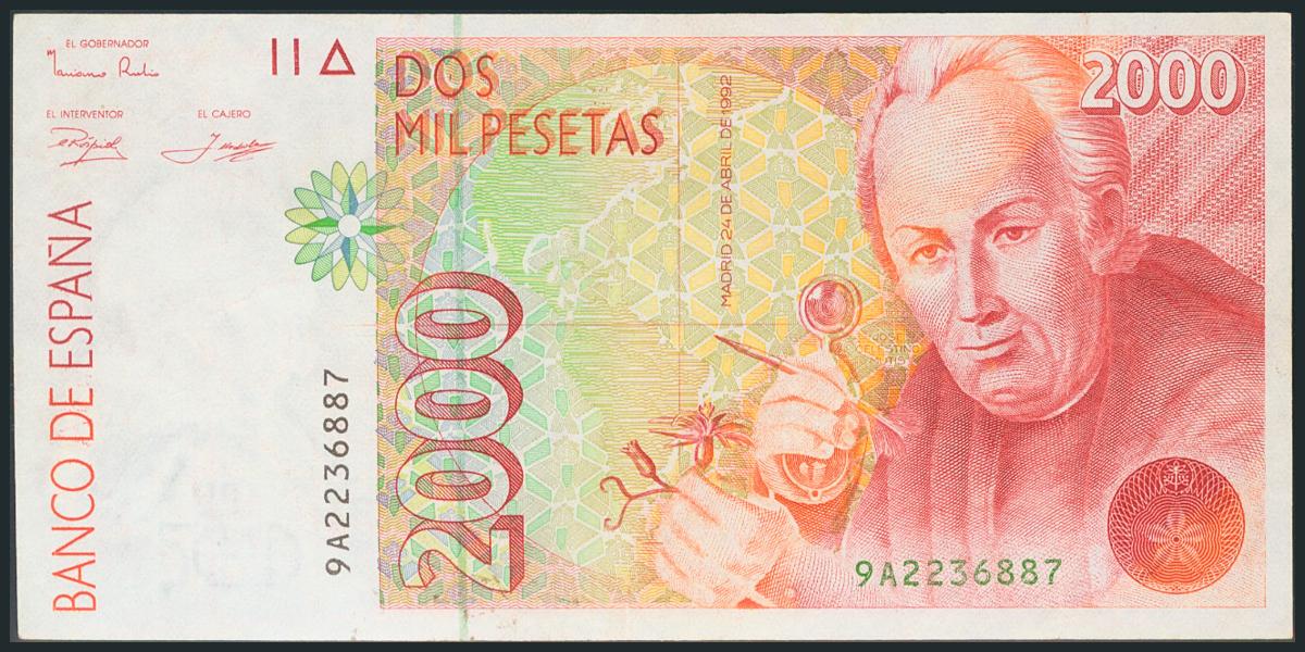 2000 Pesetas. 24 de Abril de 1992. Serie 9A. (Edifil 2017: 482b). EBC.
